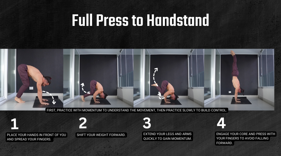 - Press Up: Press all the way up to a vertical balance.