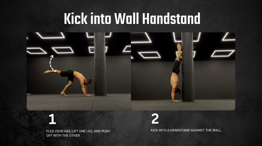 Execution: Flex your abs, lift one leg, and push off with the other to kick into a handstand against the wall.